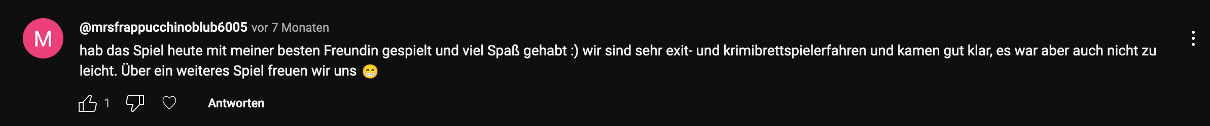 Mehr von Meeple Family"Da wir begeisterte Brettspieler und Rätsel Fans sind war es klar das wir uns dieses Spiel kaufen. Jetzt haben wir es gespielt und sind begeistert von diesem Mystery-Kartenspiel."
